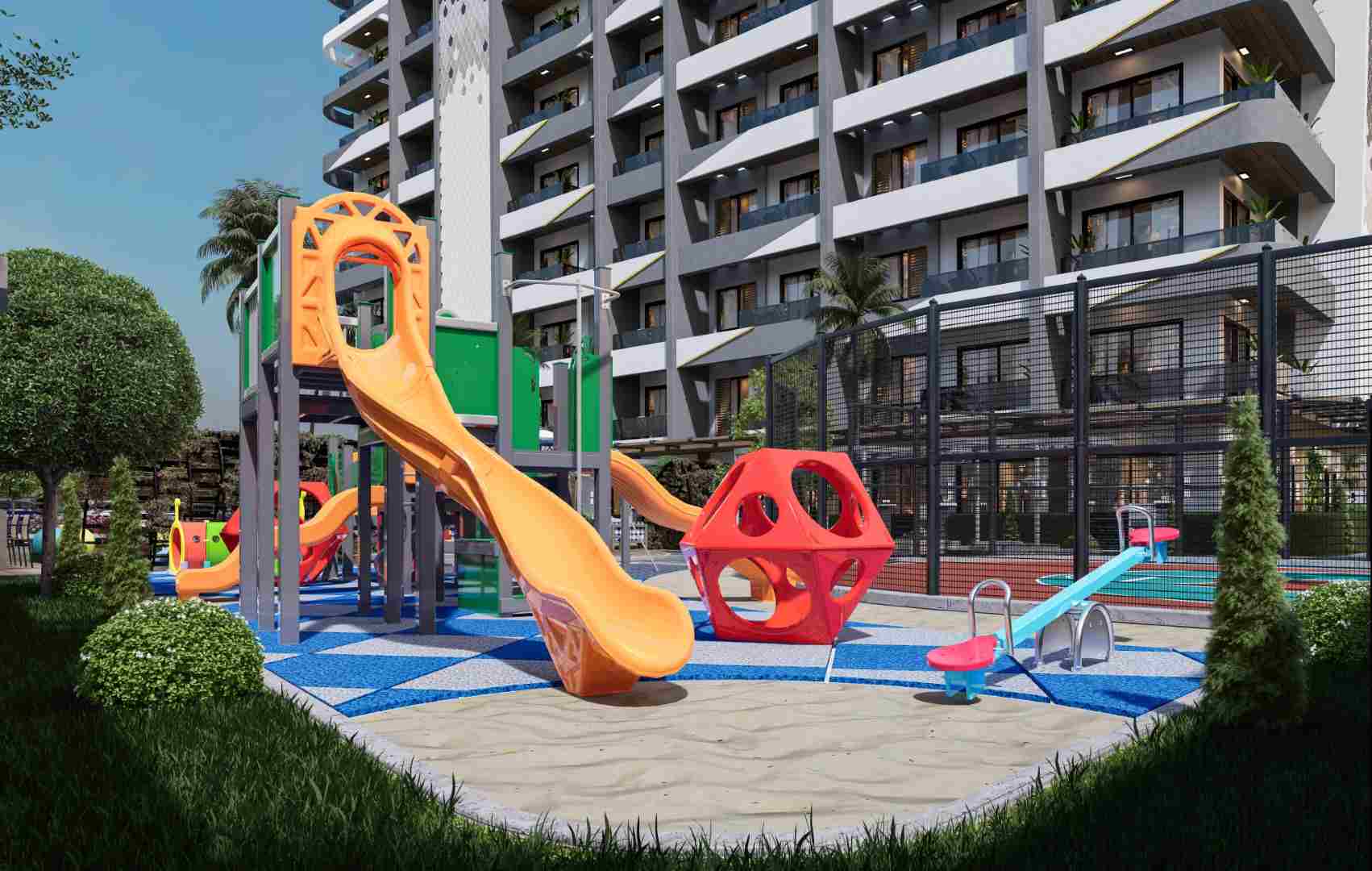 V tomto jedinečném projektu bydlení můžete trávit příjemné chvíle nejen ve svém domově, ale i ve společenských prostorách. Díky vybavení, jako jsou vnitřní a venkovní bazény, dětský bazén, sauna a turecké lázně, můžete relaxovat na těle i na duši. Díky klimatizaci v každé místnosti se můžete v horkých letních dnech ochladit a v zimě trávit čas v teplém prostředí.