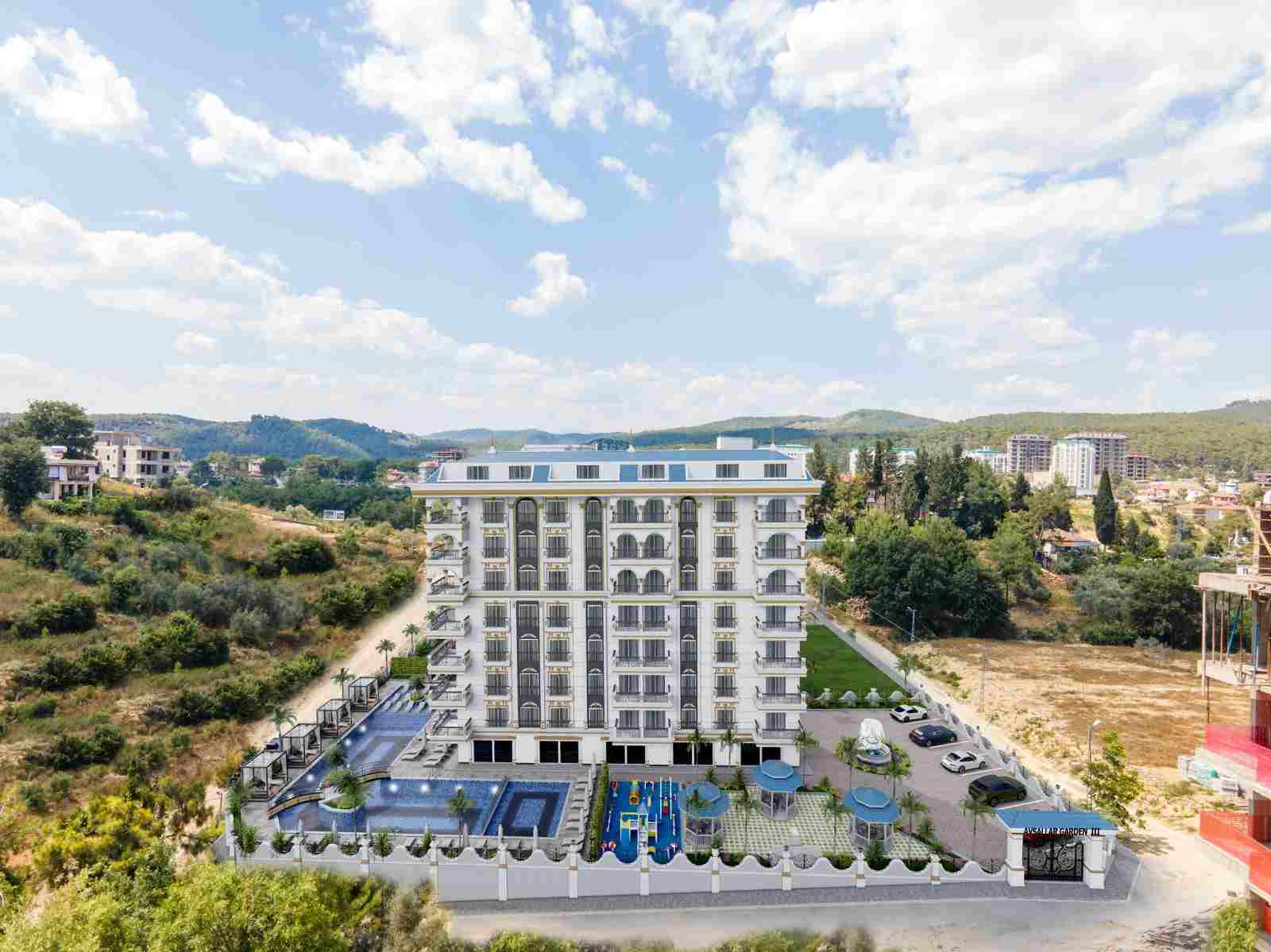 V oblasti Avsallar, na cestě na 25 km vzdálené letiště Antalya, vyrůstá mezi nádhernými výhledy na Alanyi projekt 49 apartmánů. Tento projekt nabízí různé varianty bydlení včetně 1+1, 2+1 a 2+1 mezonetových bytů. Tato sedmipodlažní budova postavená na pozemku o celkové rozloze 2800 m² nabízí klidný život v přírodě, daleko od ruchu velkoměsta s moderní architekturou.