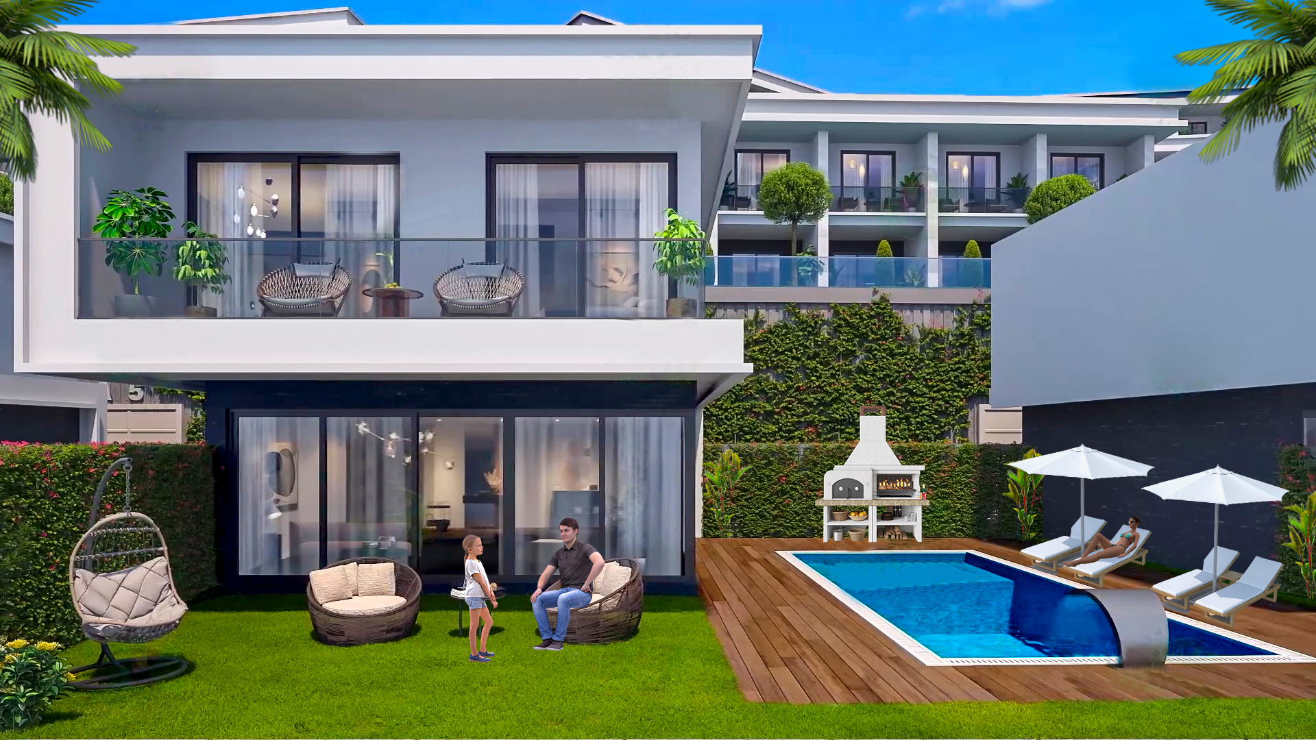 Die Villen sind nicht nur ein Wohnprojekt, sondern auch ein Lebensstil. Wir bieten eine breite Palette von Wohnmöglichkeiten wie 2+1-Doppelhäuser, 1+1-Wohnungen, Seehäuser und Villen, die für jeden Bedarf den passenden Lebensraum bieten. Darüber hinaus verfügt die Anlage über zahlreiche Gemeinschaftsbereiche wie Innen- und Außenpools, türkisches Bad, Sauna, Fitnesscenter, Café-Bibliothek, Playstation-Saal und Kinderspielplatz. Um Ihre Sicherheit müssen Sie sich dank unseres 24/7-Personals und des überdachten Parkplatzes keine Sorgen machen.