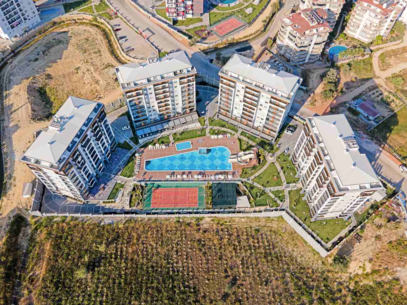 - Localisation : Le projet est stratégiquement situé à seulement 1200 mètres de la célèbre plage de Fuğla, l'une des meilleures plages de la région d'Antalya, et à 800 mètres du centre-ville d'Avsallar.