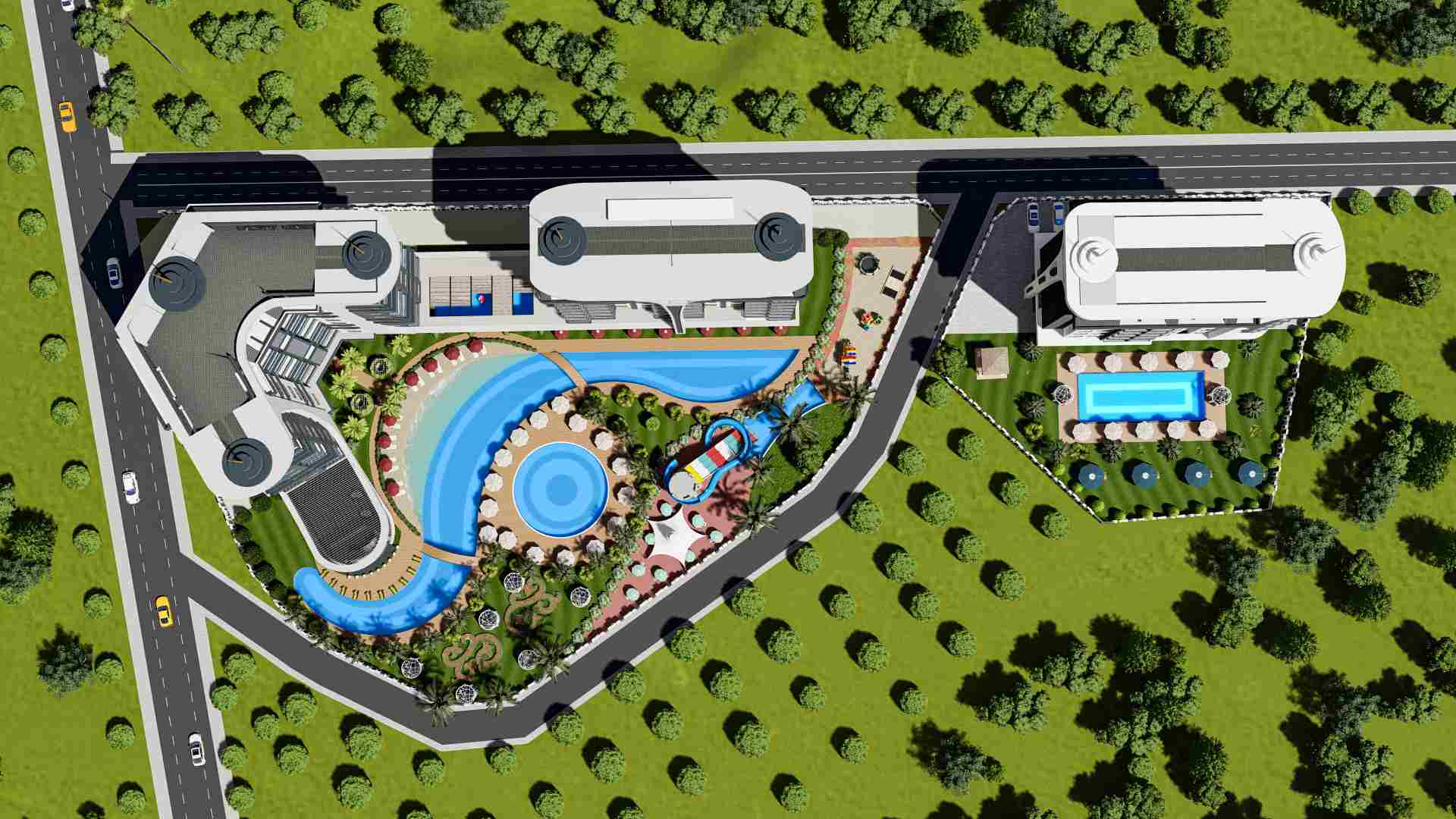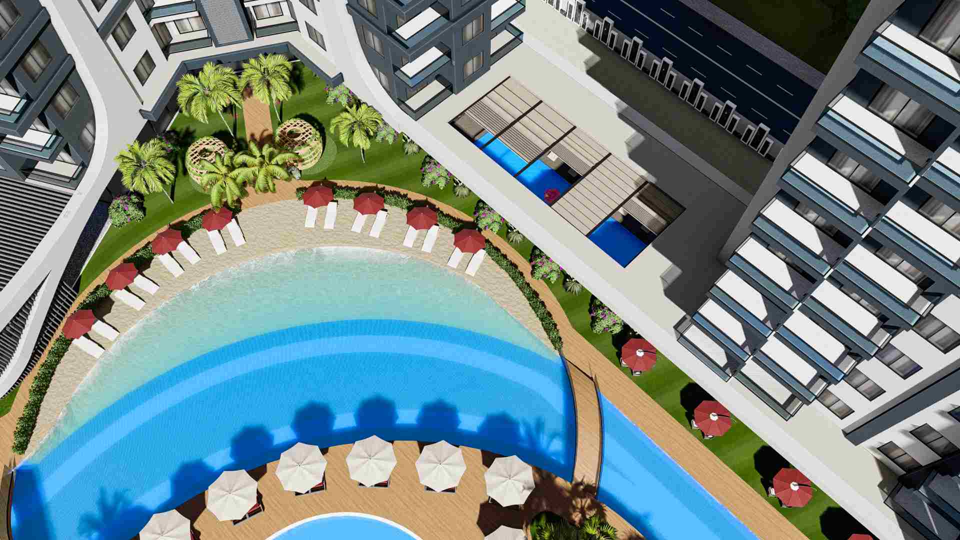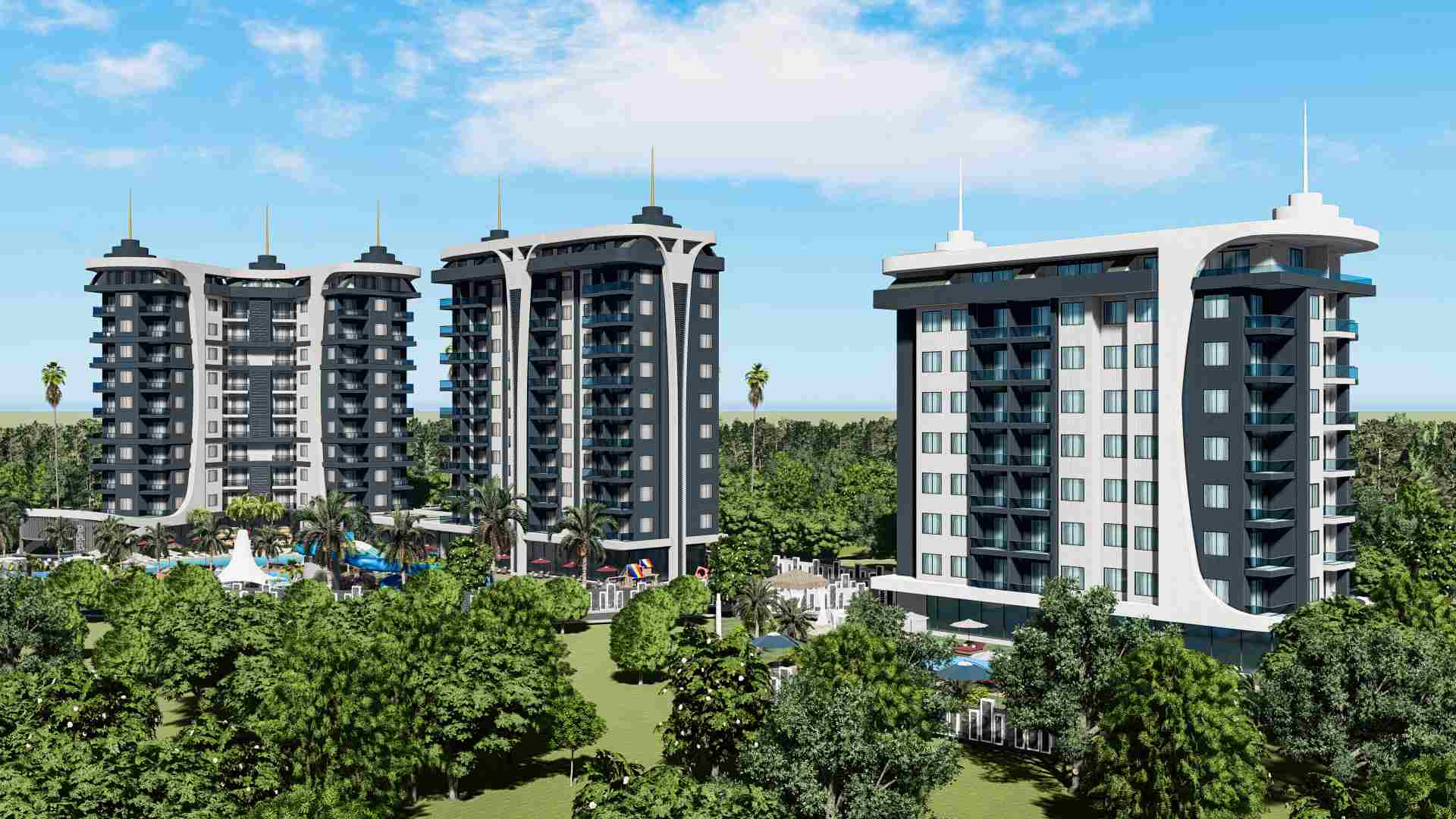 The infrastructure of the complex offers a range of amenities that will make your life even more comfortable. It is equipped with a sea water swimming pool, outdoor swimming pool with water park, children’s swimming pool, sports grounds, restaurants, shopping centers and more. In addition, important elements such as security and video surveillance have been taken into consideration.